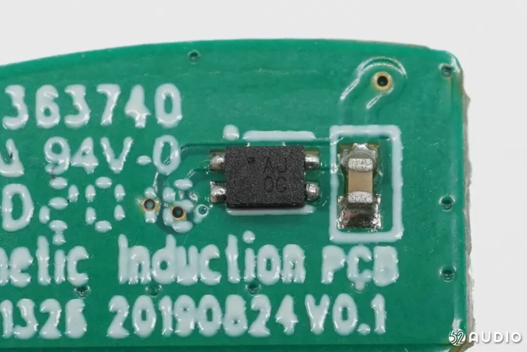 小板内侧,丝印AJOC的霍尔元件,检测耳机放入/离开充电盒的状态。