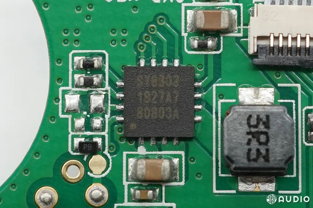 233621 Pearl充电盒采用USB-C接口输入电源,内部电路精简,由思远半导体的SY8803电源管理芯片和一颗MCU组成。思远半导体SY8803是一款专为智能TWS耳机充电仓设计的SoC级别芯片,支持28V输入耐压,内置全功能的充放电过压、过流、过温、短路保护等功能,可以负责给内置电池充放电;思远SY8803还集成了I2C通讯控制功能,MCU可以读取、配置电源内部的功能及参数,实现更多功能。充电盒采用了深圳聚和源的软包电池,容量300mAh。