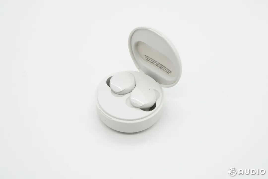 与充电盒外壳的内凹设计不同,耳机外侧壳体是向外突出的,该区域支持触控,上面有233621品牌Logo和指示灯。