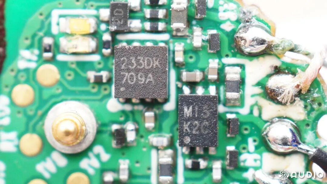 两颗2302 MOS管,下面是电流检测电阻,检测耳机的充电电流。