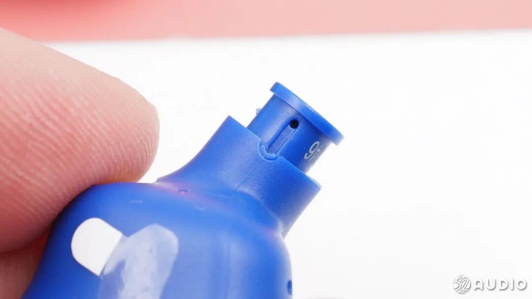 可替换的两对硅胶耳塞,耳机上默认为中号,共有大中小3种不同的耳塞适配不同耳朵大小的用户;耳塞与耳机一样是蓝色的。