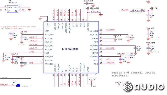 瑞昱RTL8763B内置锂电池充电管理、过压、过流、欠压保护等电池防护装置。在扩展性方面,支持三路LED驱动,支持触摸IC控制,支持模拟和数字麦克风输入,并且支持双麦克风,具有双耳通话功能。在降噪方面,支持降噪功能和环境音监听模式,是一款全能的TWS真无线蓝牙耳机一体化方案。