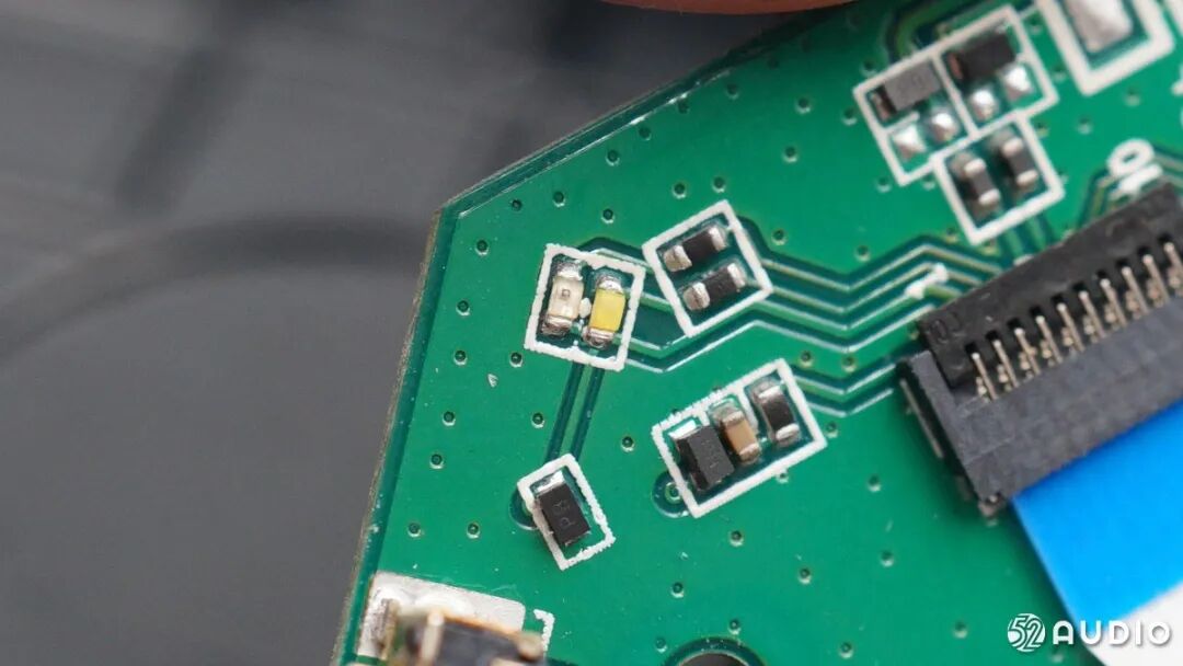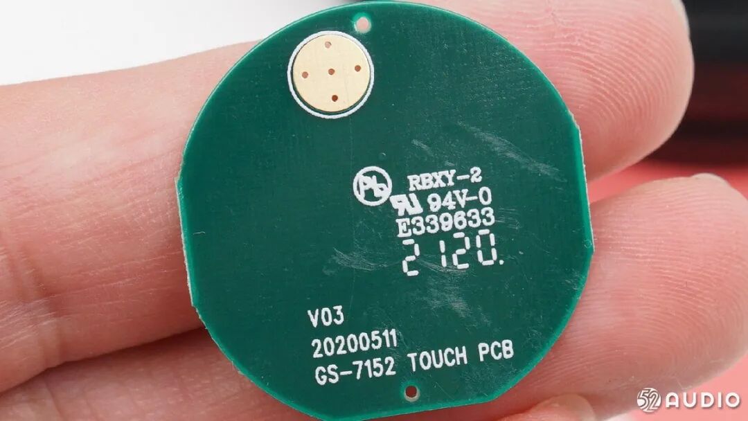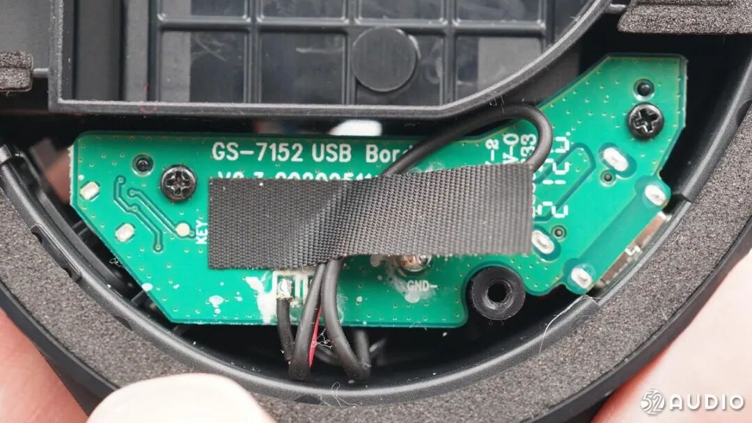 右耳内部结构与左耳类似,扬声器导线过孔胶水加固。