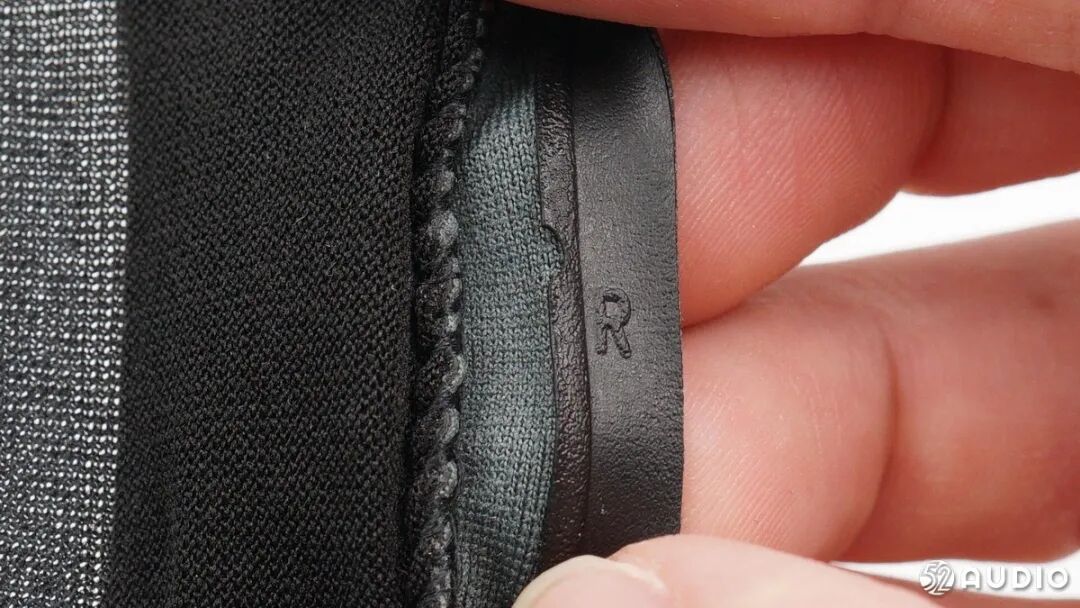 由于安装方式是套在主体上,所以耳罩在边缘做了双层加固处理并且还印有R/右标识。位置过于隐蔽不易被发现。