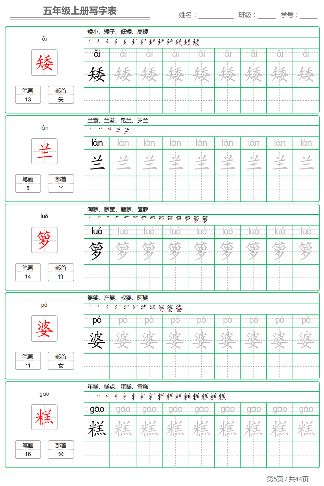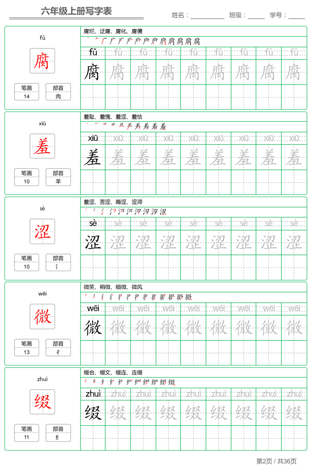 暑假来临,小语老师给大家整理了2020年秋季统编版1-6年级语文上册写字表+识字表生字练字帖【精编版】,包含拼音、笔顺、笔画、部首、组词等,各位家长可以下载打印给孩子,暑假提前练起来!【建议老师转发到班级群】