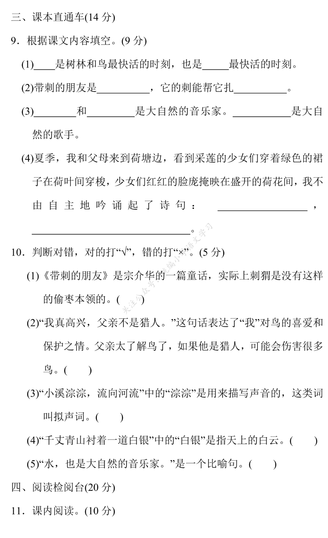 关注后发送消息“上册单元试卷7”