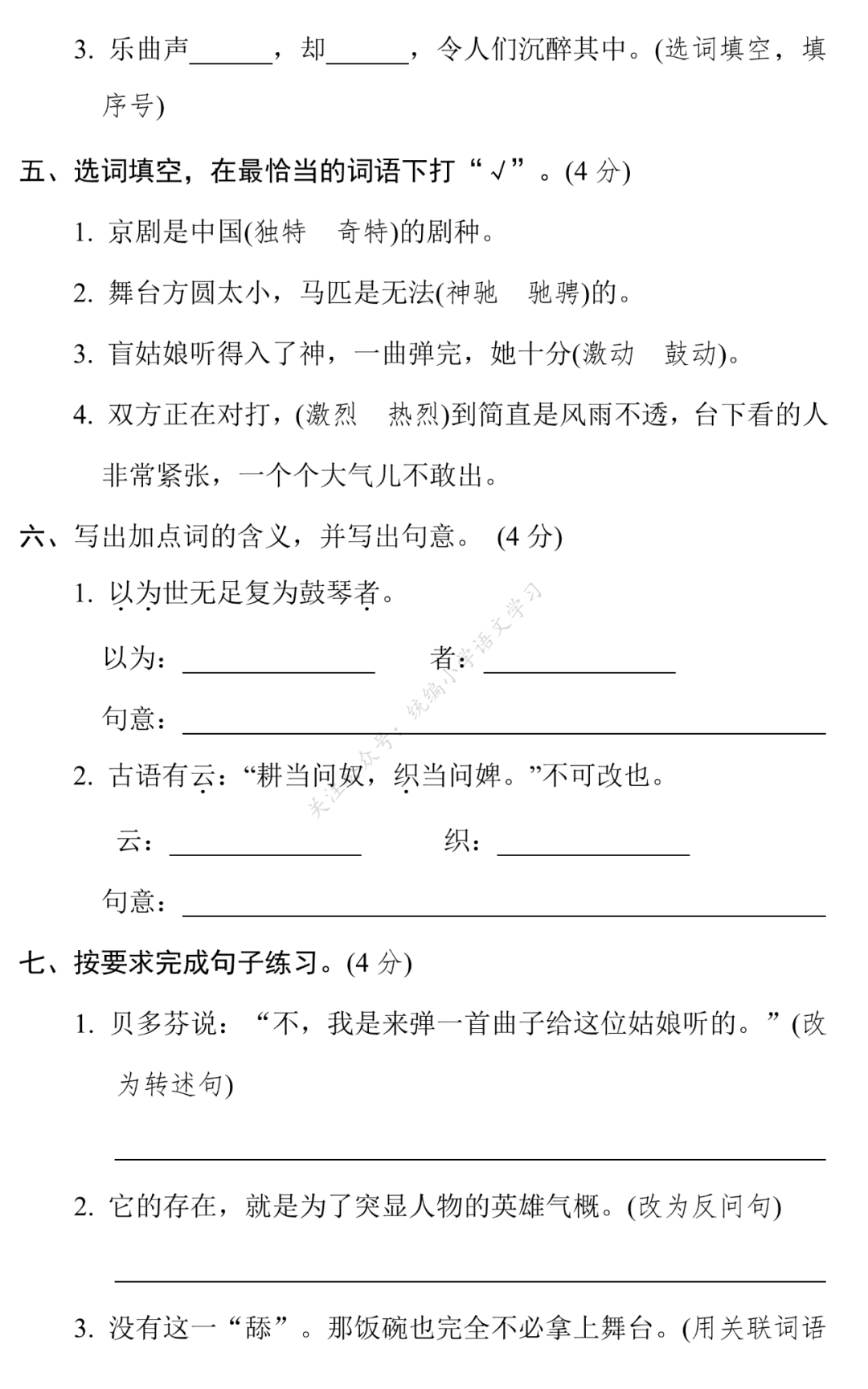 小语老师今天给大家整理部编版六年级语文上册第七单元的达标检测卷,请各位家长打印给孩子练练,更好的巩固第七单元的知识点!