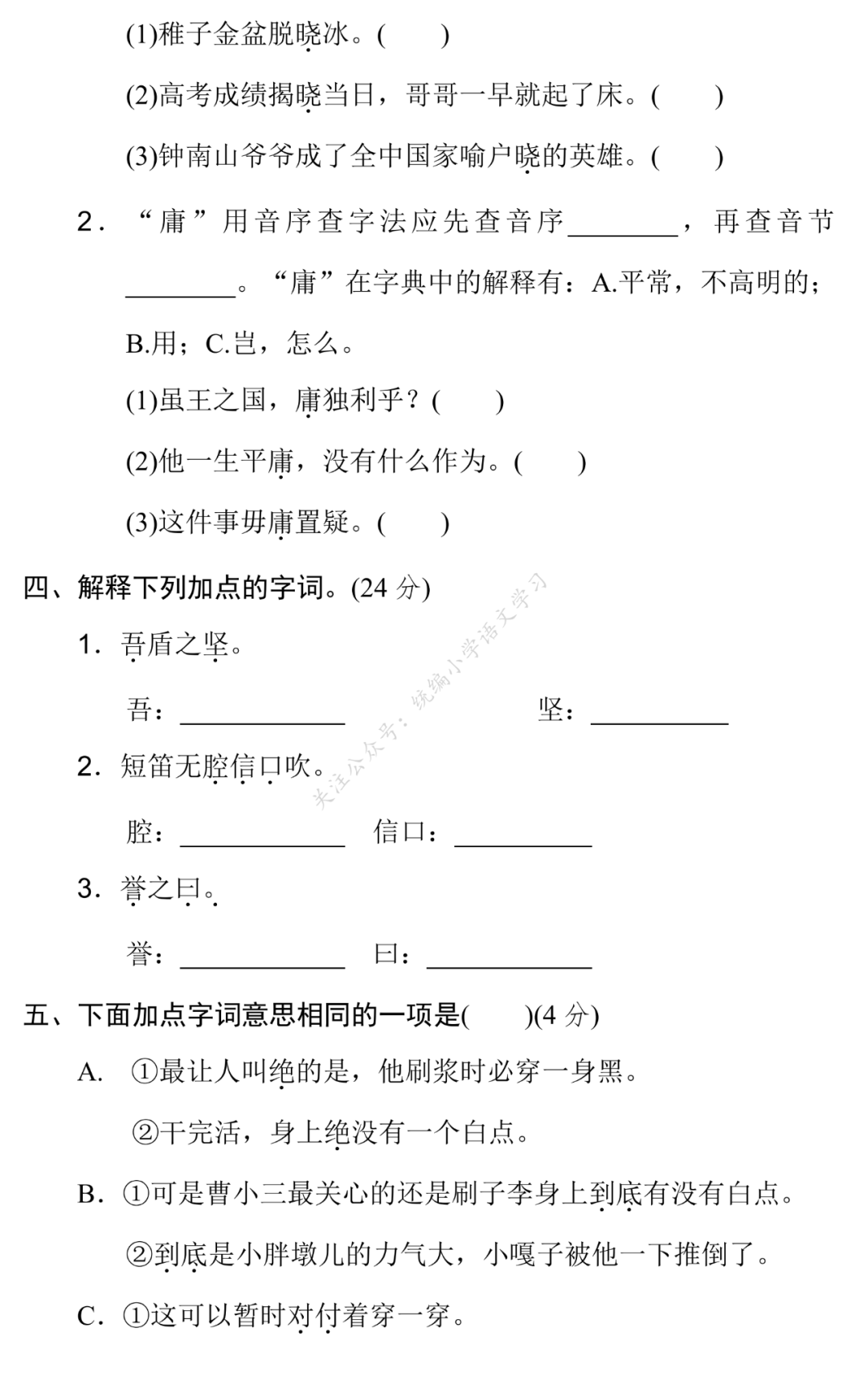 关注后发送消息“下册专项试卷5”