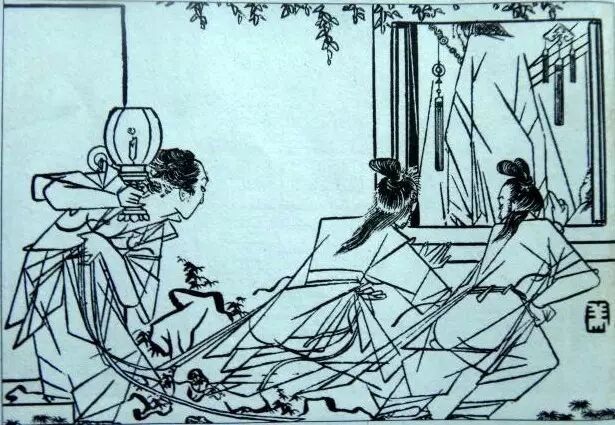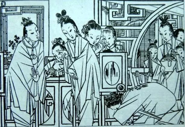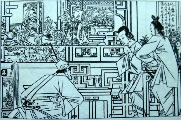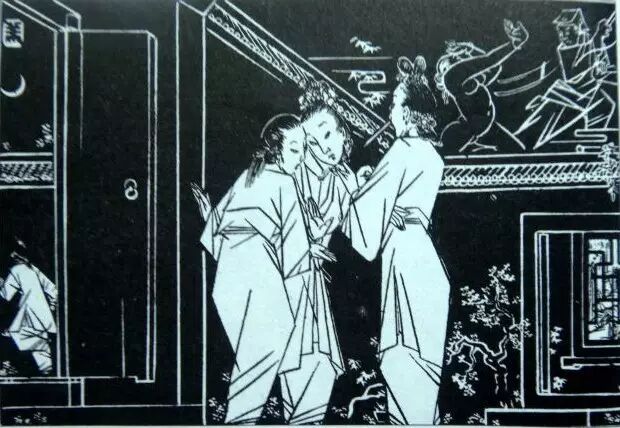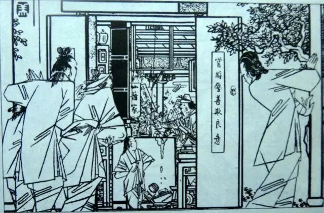 230、金莲和玉楼从西门庆进她房中去,就站在角门首窃听消息。春梅在窗下潜听了一回,隔门告诉二人刚才的情形。玉楼恐怕西门庆听见,便拉金莲来西角门首站立。