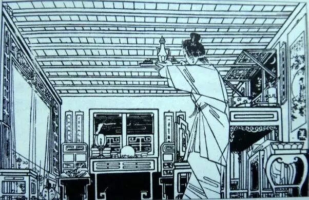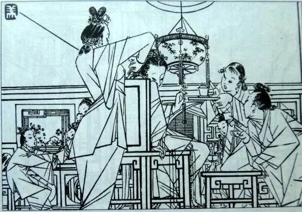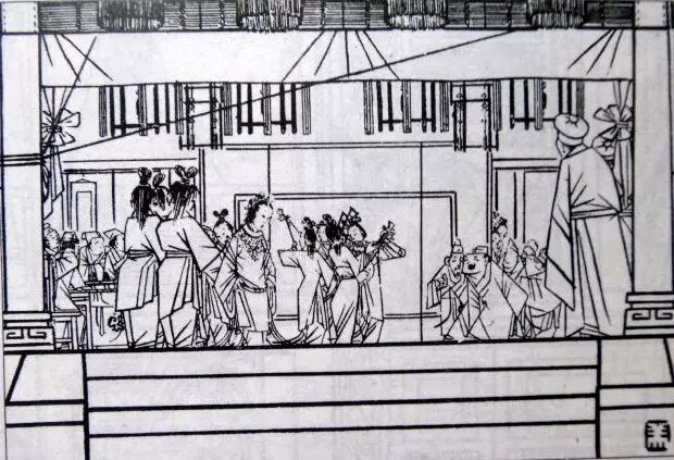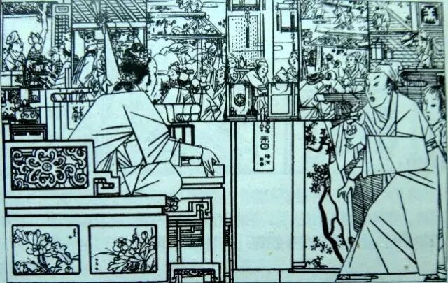 202、妇人玩了一顿饭时,西门庆忽然叫春梅筛酒在床前执壶而立,饮酒取乐。金莲得知是他与李瓶儿的把戏,气不打一处来,趁机挑唆,几句话冲得西门庆心头火气,发誓不再理李瓶儿。