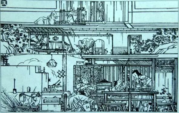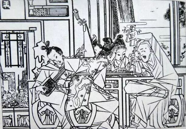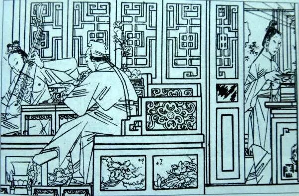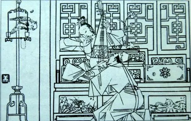 204、一日,西门庆新盖卷棚上梁,大厅上管待客官,吃到晌午时分,人才散了。西门庆起得早,去后边睡去了。陈敬济走来金莲房中,讨茶吃;金莲正在床上弹弄琵琶。