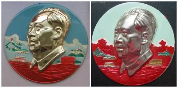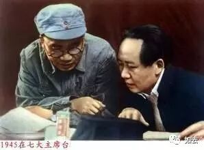 毛泽东和朱德在中共七大(1945年4月23日)会议期间合影。从1936年开始国共合作抗日,共产党及共产党领导的军队都是国民政府的一部分,受国民党领导。朱德是国民革命军第八路军(八路军)的司令,照片中的朱德头上戴的是国民党军帽。后来在很长一段历史时期中,这张照片上朱德的军帽被修去了国民党徽章,有些人认为国共合作在当时的历史条件下虽然是一个重要的选择,但是毕竟最终没有成功,历史本身是客观无声的,只不过展示给后世但无声这段并不湮没无闻也最好。