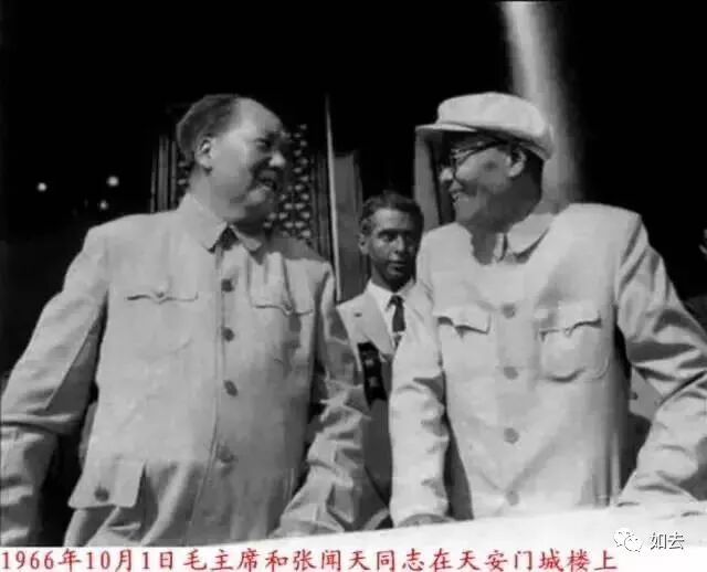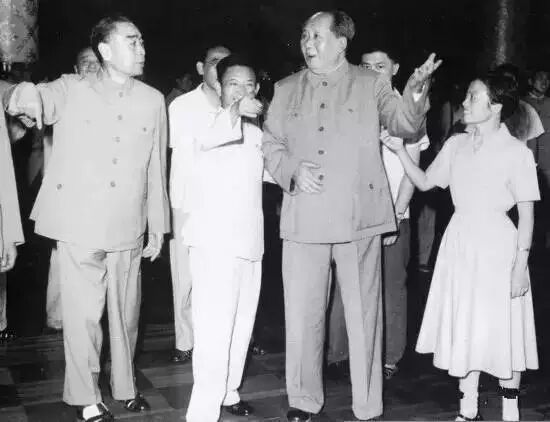 1964年,毛泽东、周恩来、胡耀邦在共青团第九次全国代表大会合影。