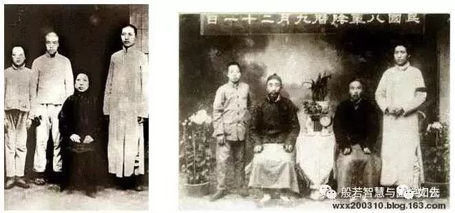 1919年春与母亲、弟弟在长沙(上左图)。1919年11月与父亲、弟弟在一起(上右图)