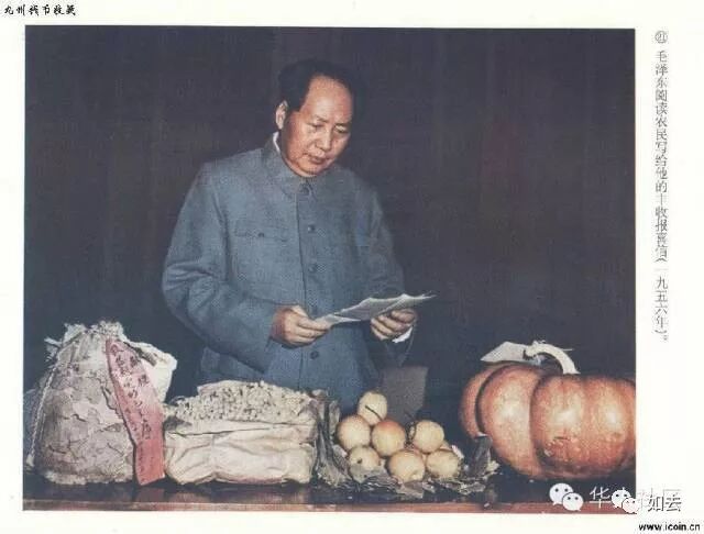 毛主席看贫下中农的丰收动喜信。(一九五六年)
