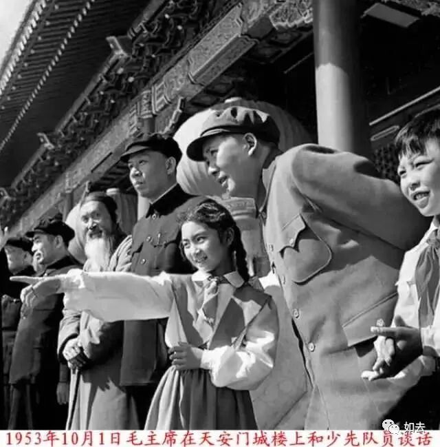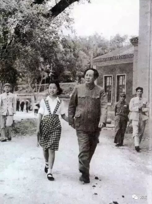 1953年5月30日,毛泽东与李敏、李讷、刘松林及身边工作人员在北京玉泉山。