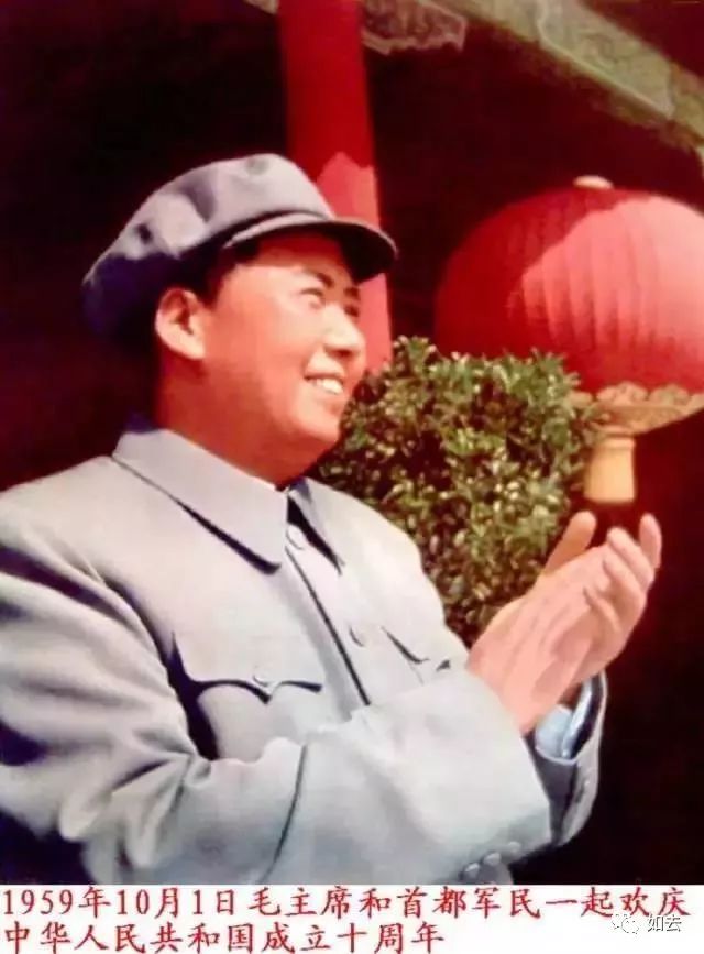 1959年,毛主席与首都军民一起欢庆中华人民共和国成立十周年。