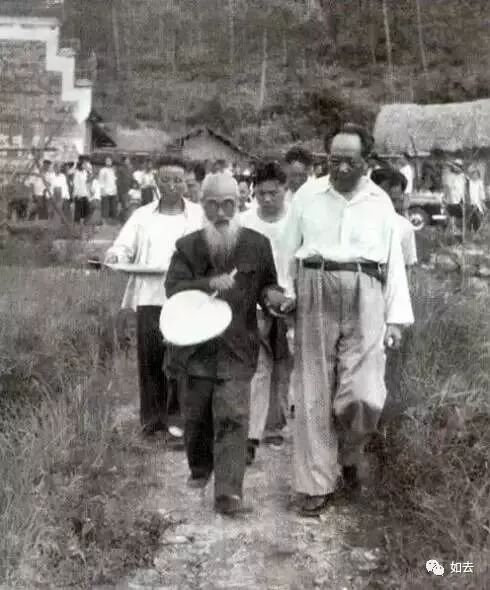 1959年6月26日,毛泽东同他少年时的私塾老师毛宇居携手同行。