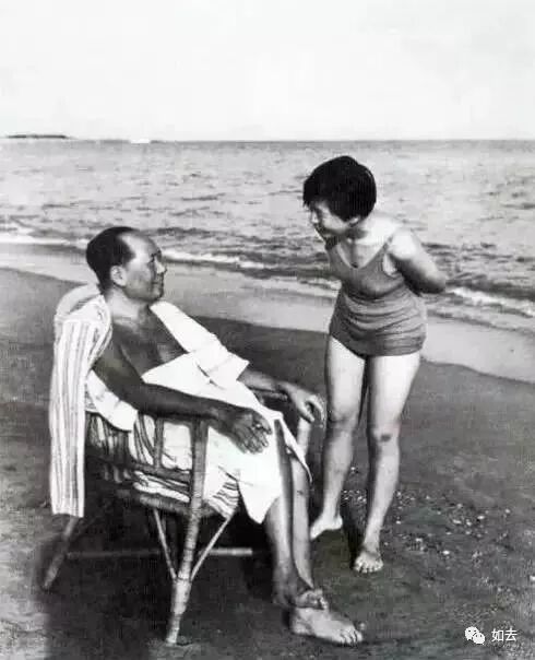 1955年,毛泽东和两个女儿、侄子,在北戴河浴场。