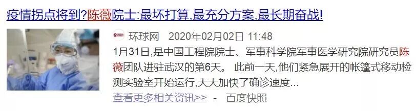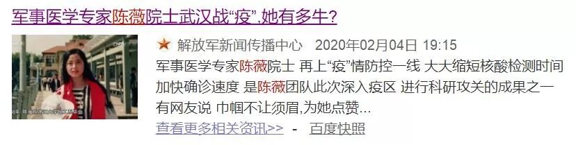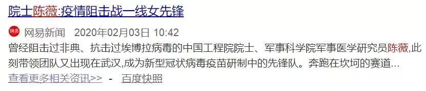 由于在阻击非典、抗击埃博拉等多场硬仗中作出重要贡献,陈薇也被视作此次新型冠状病毒疫苗研制“百米”赛跑中的“种子选手”。