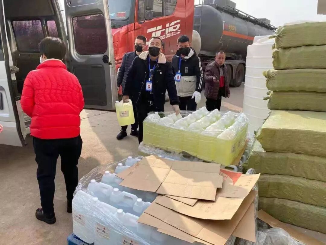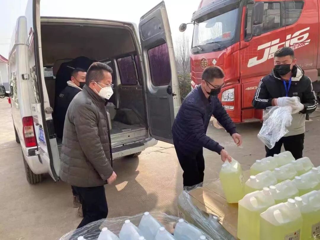 受新型冠状病毒感染的肺炎疫情影响,企业不得不推迟开业。湖北麻城分厂厂长安晓广时时关注着湖北疫情的防控情况。当他在朋友圈里看到湖北最急缺医疗防护用品时,就产生了捐献的想法。他说:“我们在麻城工作,麻城就是我们的第二故乡。作为企业,我们理应承担起一个企业应有的社会责任和担当。”1月30日上午,他通过电话向村党委副书记、村委主任王金安谈了自己的想法。王金安副书记当即向党委汇报,征得同意后,随即安排村卫生院院长段淑霞具体落实。30日下午,30件500 ml、59壶1000 ml的84消毒液和73壶1000ml的75%酒精消毒液全部到位,王金安副书记又安排了运送车辆和车头条幅,一切工作准备就序。
