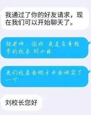 首先是目标精准,他找的老师是一个新老师——物理老师,这位老师可能还没有该校长的微信,所以才有上当受骗的可能;