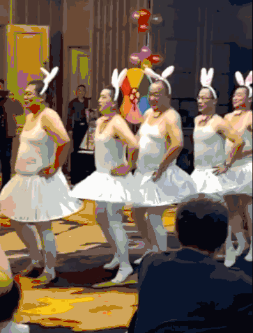还有一群穿着芭蕾舞服,五大三粗的中年老天鹅。