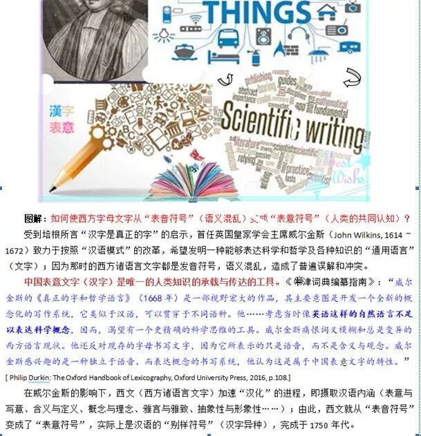 直到西方使其表音文字寄生于“汉字表意”(摄取定义、概念、抽象和逻辑等),它们方能被用来书写文学、科学和哲学。这个过程发生在1660—1750年代。详见诸玄识:《西方逻辑:源自古汉语,赠予古希腊》