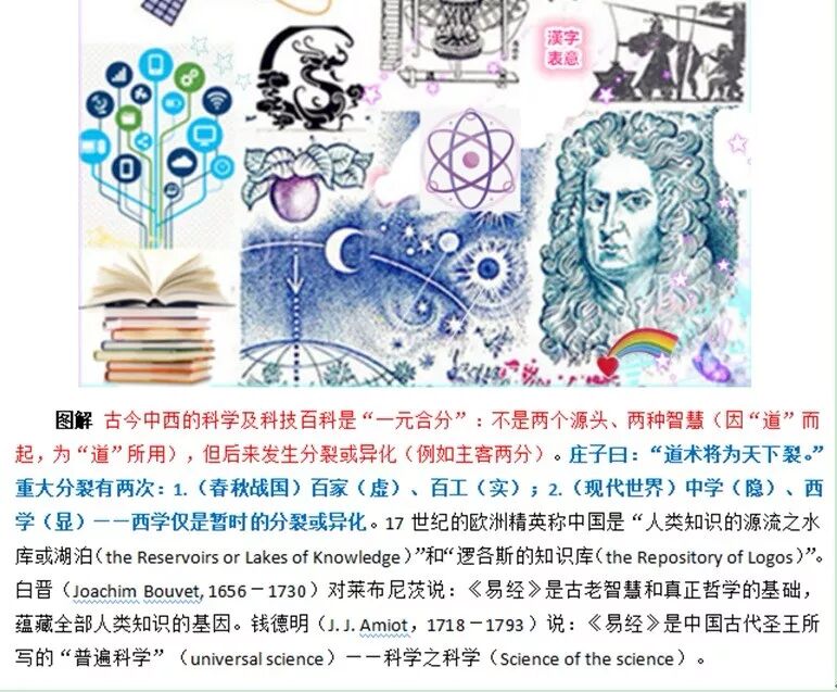 【笔者评注:这句话说明什么呢?首先是语言文字对哲学、科学和知识乃至关重要。什么样的语言文字呢?那应该只有一种,即中国表意文字——汉字。鉴于18世纪以前的西方文字只是发音符号,而缺乏合理语义,尤其是缺乏像汉字那样的普遍性、通用性、抽象性和关联性的意涵;西方便通过摄取“汉字表意”,使它的“表音符号”变为“表意符号”,从而胜任于书写知识百科。这项工作主要是由与牛顿同时代的莱布尼茨开始的。正如新罕布什尔大学教授达塞克(Val Dusek)所:“莱布尼茨……是命题符号、逻辑和数学逻辑的发明者。……莱布尼茨的初衷是:万物皆可由相应的符号来表示,并且能向读者直接揭示万物之本质,这就是中国表音文字(汉字);……中国表音文字原本就与万物的本质密切相关和精准一致,它代表着华夏先哲对万事万物的直接洞察……。”[28]】