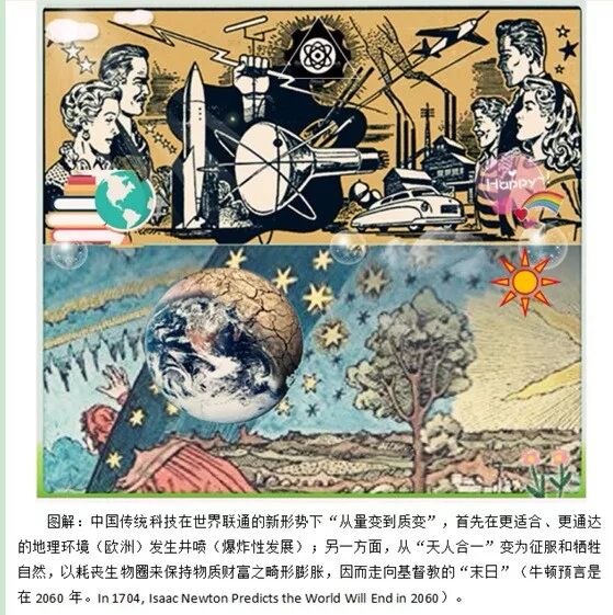 在新形势下,即“以全球性生态作为其平衡条件与牺牲代价”,传统中国所启动、推动的“技术~物质文明”从量变到质变,则在更适合、更通达的地理环境中发生“井喷”(爆炸性发展)。中国自身遭遇本土生态饱和与亚太地理瓶颈,“天时地利”却转移到亚欧大陆的另一端。欧洲从远离文明中心的边缘变为“世界通途”(通往西半球的捷径),而且开始长期具有“地缘政治”(海洋地缘)的战略优势,这是西方崛起的客观条件。