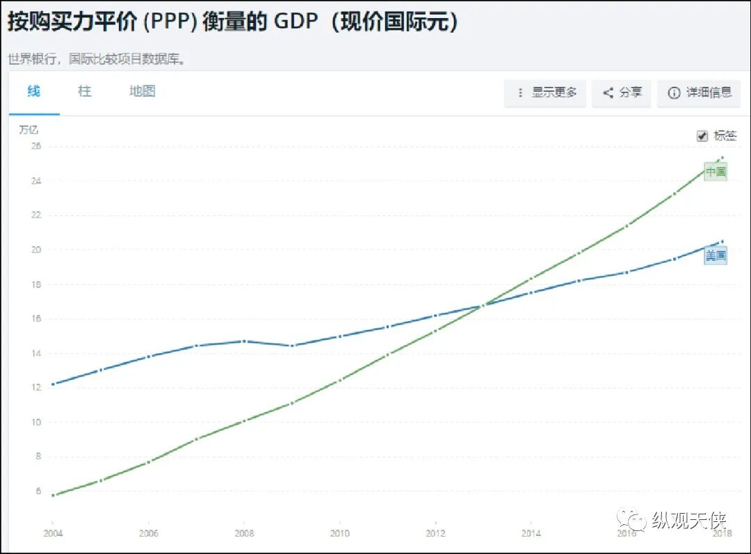 按照(ppp)购买力平价计算,2013年中国已经超越美国,成为世界第一。