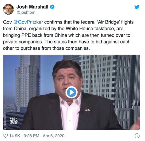 只是公然抗命毕竟有点法理不容,民主党必须在道德上占据制高点。汹涌的独立民意,就是一种掩护,一颗要价的砝码。进入紧急状态之前的48小时,加州政府已经先人一步同中国签订了2亿个口罩的供应协议,其中1.5亿个是N95口罩。消息一出,媒体哗然,知道自己分不到多少联邦物资的民主党州纷纷来电,加州也就顺水做起了二道贩子,承诺向各州提供口罩。民主党州这才不用眼巴巴的望着联邦要防疫物资!那句话怎么说来着?