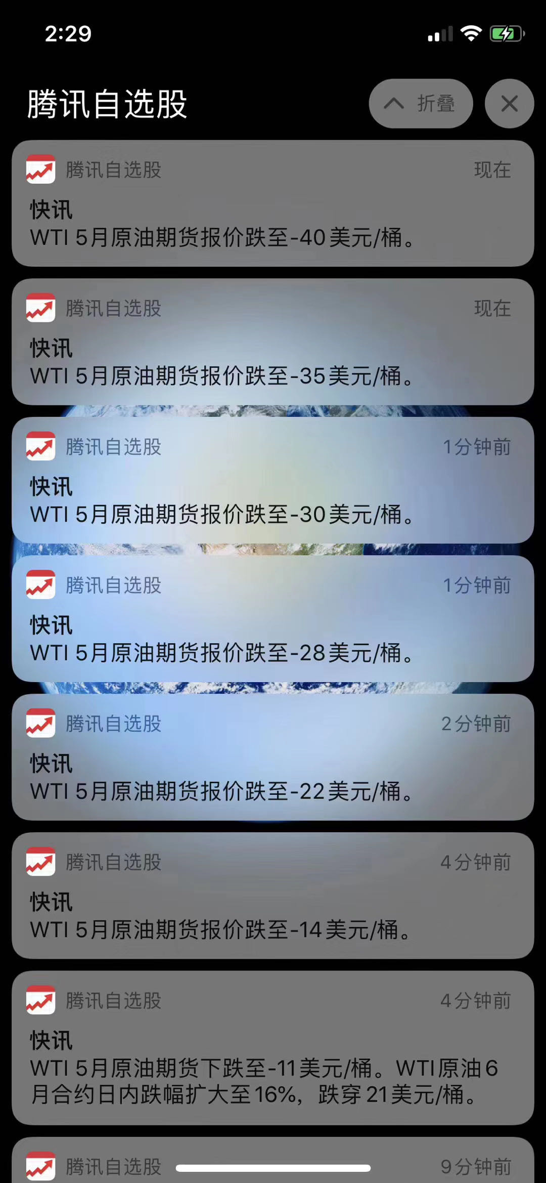 WTI的5月原油期货报价一路下跌,跌破0美元一桶,最后一度狂飙到近-40美元一桶的水平。