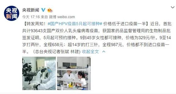 在价格上,国产宫颈癌疫苗价格则定在329元/针,9-14岁打两针,全程658元,超过14岁的打三针,全程987元,都不到进口疫苗价格的一半。