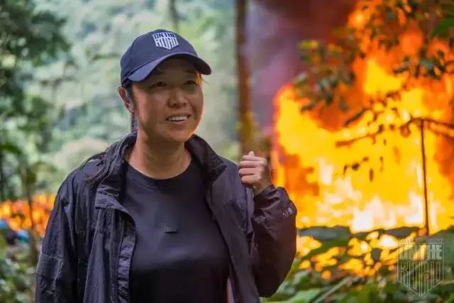 在滚沸的岩浆池边举起“中国”的旗帜,