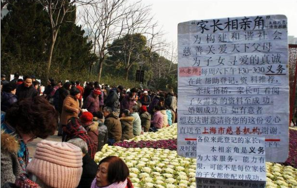 甚至上海有大量的父母代替孩子去相亲,家长相亲角成为一道耀眼的风景: