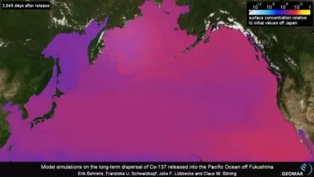 日本原子能研究开发机构,曾进行过扩散情形模拟演算。结果触目惊心——这些放射性物质,顺着海流5年后将到达北美,10年后回到亚洲东部,30年后几乎扩散到整个太平洋。