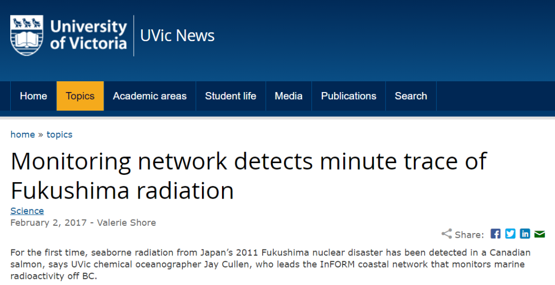 加拿大维多利亚大学的海洋学专家表示,他们在加拿大西海岸的三文鱼身上,首次检测到铯-134放射性元素,证明日本福岛核污染已经扩散到北美地区。