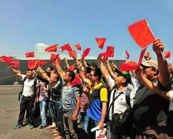 一句“中国人到这边来”,一艘飘扬着五星红旗的中国军舰,让多少人热泪盈眶。![]()