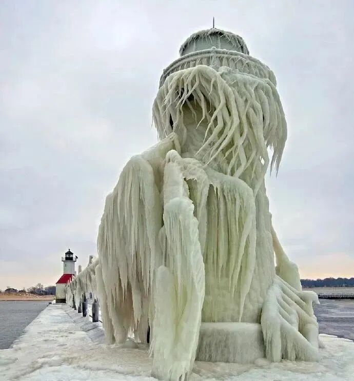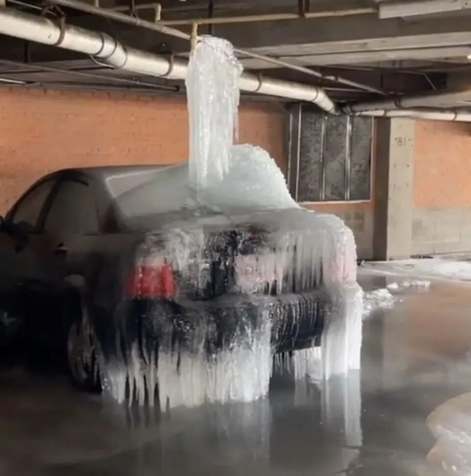 洗车场入口则是结满冰柱、宛如一座冰雪宫殿