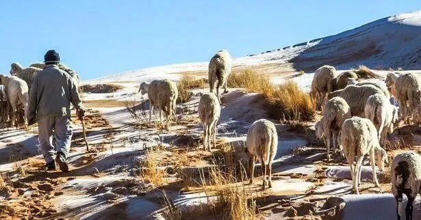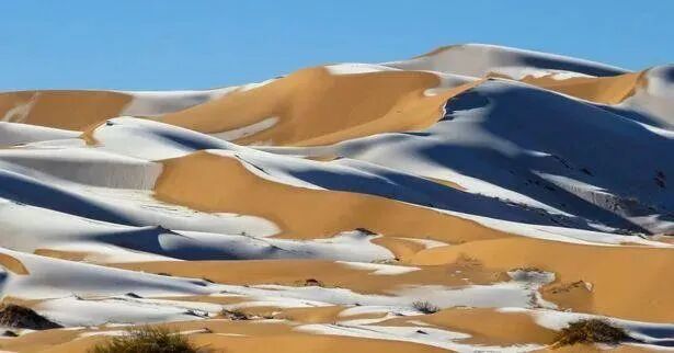非洲撒哈拉沙漠气温降至-2℃,黄沙白雪。。。