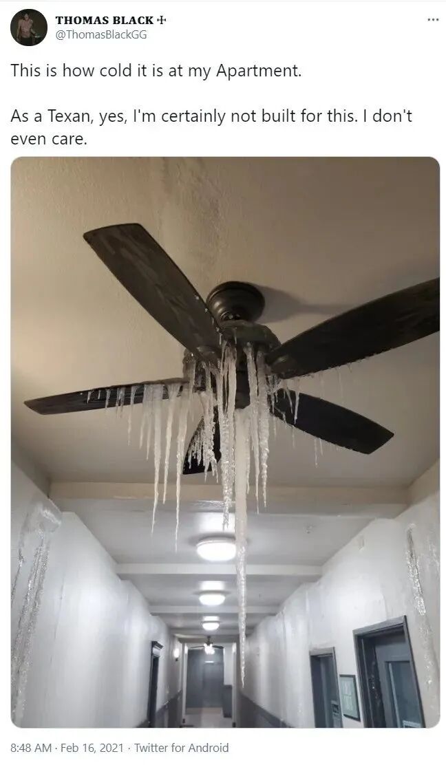 一向冬暖夏热,气候相当于中国广东的美国得州,居然几天之内出现-18°C的极寒天气