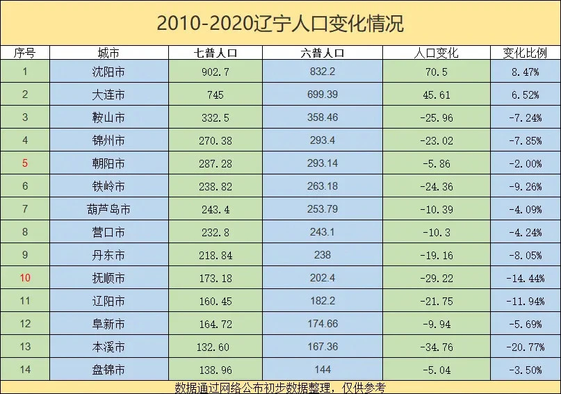 我们分别来看。辽宁省最新人口4259万人,十年减少了115万人,还是可以接受,这也是东北三省里人口降幅最少的省份了。
