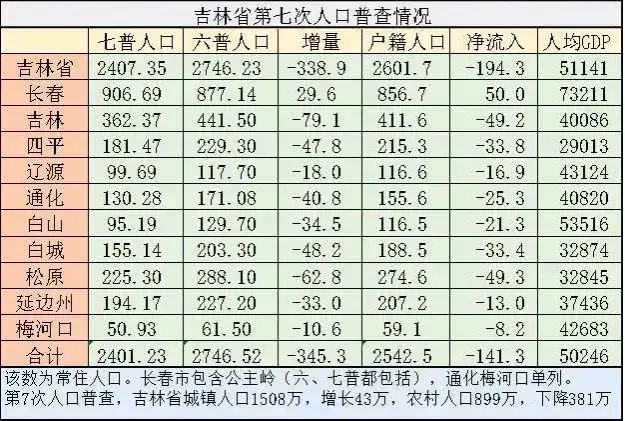 吉林省十年人口减少了345万,其中只有长春的人口增长了29万。
