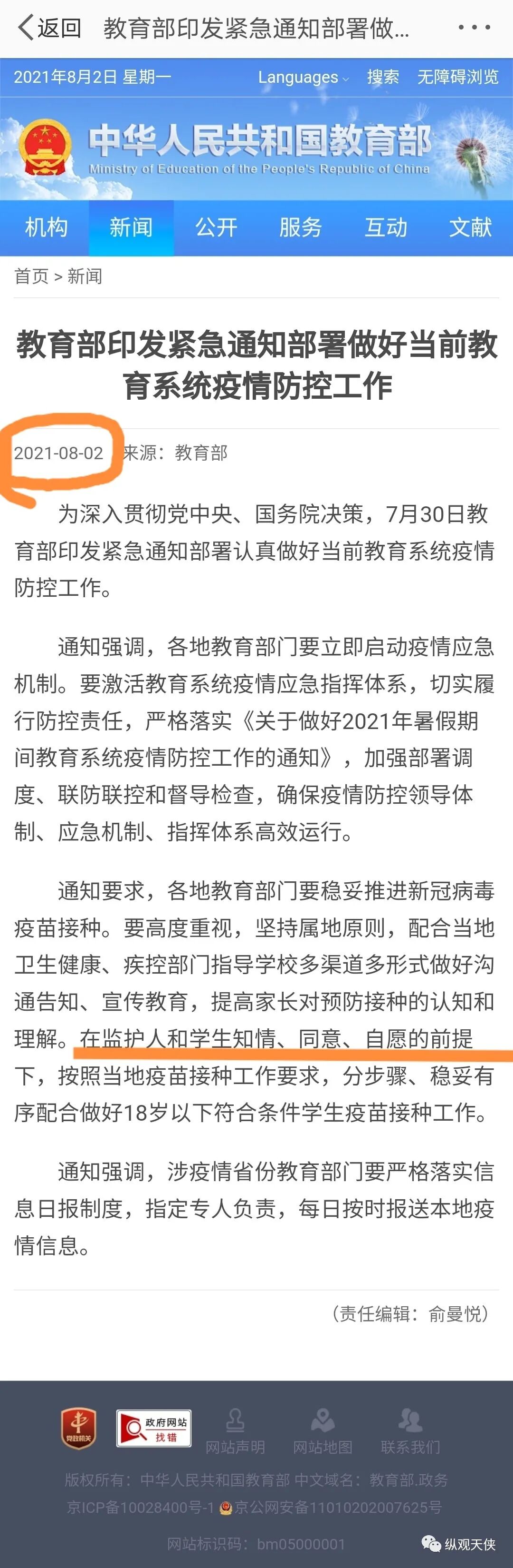 通知要求,各地教育部门要稳妥推进新冠病毒疫苗接种。要高度重视,坚持属地原则,配合当地卫生健康、疾控部门指导学校多渠道多形式做好沟通告知、宣传教育,提高家长对预防接种的认知和理解。在监护人和学生知情、同意、自愿的前提下,按照当地疫苗接种工作要求,分步骤、稳妥有序配合做好18岁以下符合条件学生疫苗接种工作。