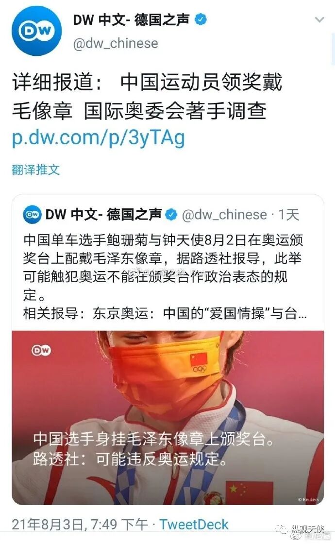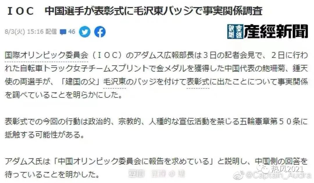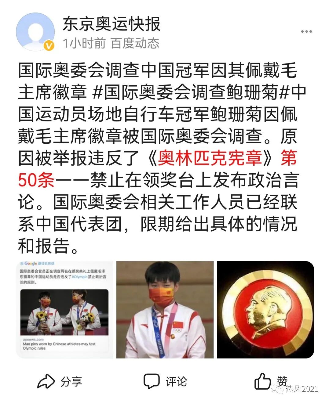 东京奥运会上的毛主席像章,果然引来一场不大不小的风波: