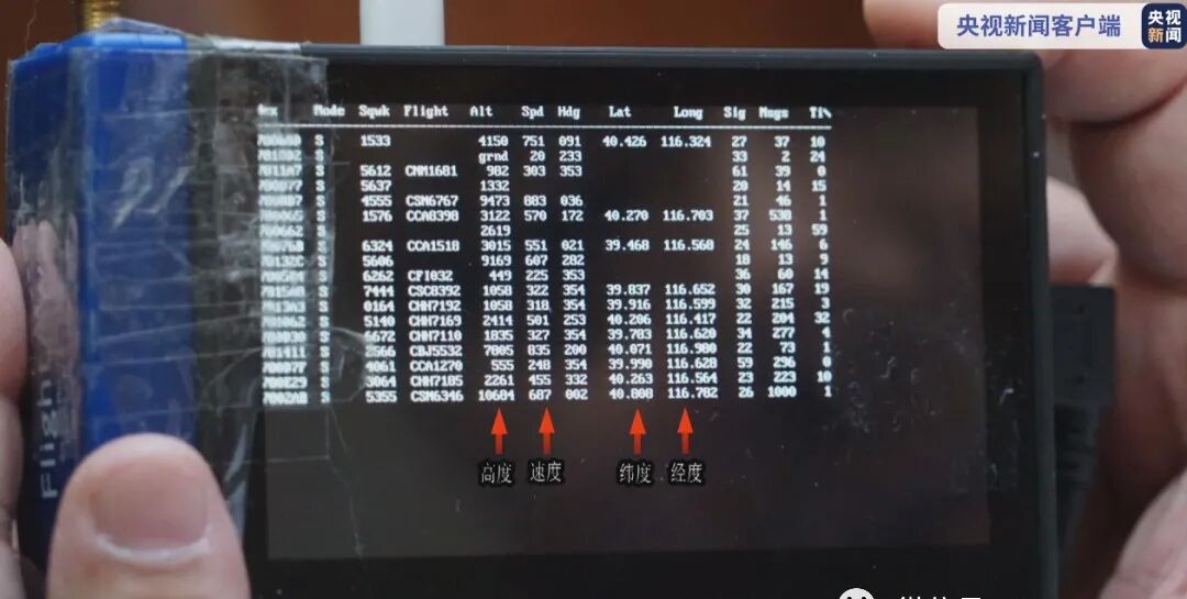 北京市国家安全局干警:字母是代表飞机的型号,这些是高度,这是速度,然后这是经纬度,都是能实时显现的。