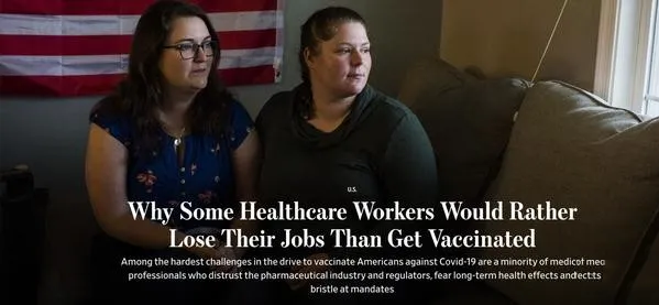 美国疾控中心(CDC)最新数据显示,截至26日,美国疫苗接种完成率仅为57.5%。美国目前的疫苗接种率被世界其他许多国家远远甩在身后。这一数字普遍落后于G7国家。G7国家中开始接种最晚的日本都于26日宣布:已接种两剂新冠疫苗的人群已达总人口的70.1%。华尔街日报称,美国符合疫苗接种条件的人群中有近三分之一仍未接种疫苗。卫生官员认为,一些拒绝接种疫苗的人最终会被说服接种疫苗,另一些人可能永远不会被说服,而这些坚持不打疫苗的人包含医护人员。这一事实成为拜登政府推进疫苗接种过程中面临的最令人困惑的问题。为什么医护人员作为离病毒最近的一群人,处于抗疫的一线,宁愿被解雇也不愿接种疫苗呢?“我相信新冠疫苗会致人死亡,并且我认识因接种新冠疫苗而去世的人”卡罗尔·芬克(Carole Funk)接受华尔街日报采访的时候称。
