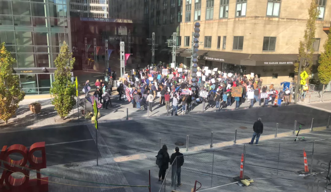 人群中有人喊道州长是“疯子”和“妄想狂”,并高喊“救救我们的孩子,救救我们的未来”。