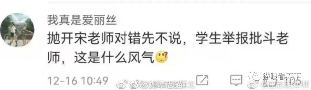 教师既然能在课堂上公开讲,就不存在什么秘密,学生对你观点不予认同,只是通过视频的方式将她所说原话进行了重现,更不存在批斗、歪曲、告密。如果这个教师心里坦荡,根本就没有必要害怕什么,而她的那些拥趸们更没有必要恼羞成怒,对这位学生围攻辱骂。难道这个道理都想不明白吗?